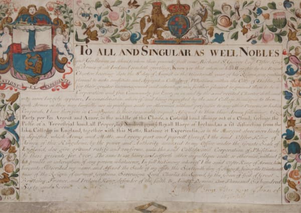 The College of Physicians in Dublin is established by Royal Charter granted by King Charles II. Under the Charter no person can practice medicine within a seven mile radius of Dublin unless licensed by the College. The Charter named the first 14 Fellows of the College, and confirmed Stearne as President for life.