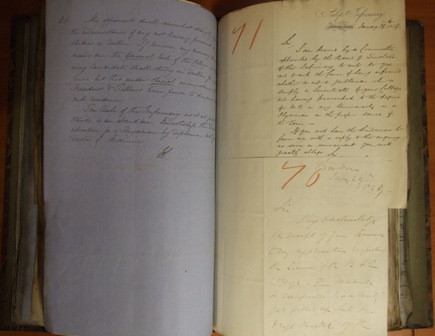 Harriet Wheelock / Tuesday 21 September 2010 A lot of letters… Since completing the cataloguing of the Sir Patrick Dun's Hospital archive, I have started on the next collection on my list – the archive of the College itself. This collection is the single largest collection in the archive, with over 300 boxes of material. It covers the history and development of the College from its foundation in the seventeenth century right up to the present day. As the College is still going it's also an ongoing series with material being added recording the current history of the College. At the moment I'm working thought the voluminous correspondence of the college over the last nearly two hundred years. The letters deal with everything relating to the College from the management of their large estates in county Waterford, to the opinions of doctors on proposed medical legislation. (There are also the letters relating to doctors putting their names to advertisements mentioned in a previous post.) The nineteenth century letters are generally in fairly good condition, if a bit dusty, the biggest problem being the use of metal paper clips and pins to hold pages together. These have rusted over time and are damaging the paper. Which means I have spent the last week surrounded by piles of dusty letters trying to carefully remove rusty metal fastening, without tearing the pages! It's one of the less glamorous, if more common, tasks of the archivist. Once all the pins and clips have been removed the letters are arranged chronologically, thankfully they are mostly bound in letter books so the arrangement is already done, and entered into the catalogue. There then ready to be made available for readers, with the rest of the College collection, once it has been fully catalogued.