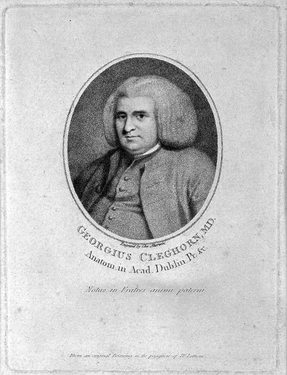 George Cleghorn, who was one of the most influential figures in 18th century Irish medicine, was born in Scotland in 1716. His intelligence was noted early in his life and, at the age of 12, he was sent to Edinburgh to study Latin, French and Greek. At the age of 15, he started to study medicine under the tuition of Alexander Monro, primus, the outstanding Scottish physician of the day.