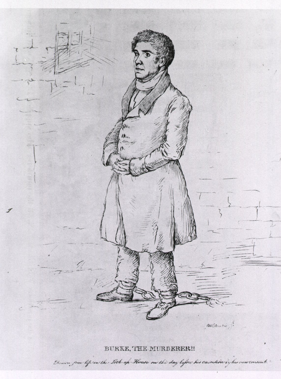 Burke and Hare, two men from Northern Ireland who moved from grave robbing to murder in Scotland between 1827 and 1828 in order to supply fresh corpses to the medical schools. Between them, they murdered 12 people and supplied the corpses to a well known physician in the medical school in Edinburgh. After they were caught, Hare testified against his friend in order to gain immunity and William Burke was hanged in January 1829. The Burke and Hare murders directly influenced the passing of the Anatomy Act in 1832 by the Government. This allowed unclaimed bodies and those which were donated by relatives to be used for the purposes of study. It also required the licensing of anatomists. This law effectively ended the body snatching trade in Great Britain and Ireland.