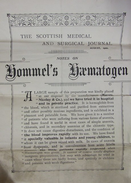 Dr Duke states he gave the statement on the 'distinct understanding it should not be used for publication. I am entirely in agreement as to the resolution of the College', this presumably is the same resolution quoted above from the letter to Dr McEvoy. Dr Duke obviously took steps to remade the situation and the last letter in the series is from the manufactures of Dr. Hommel's Haematogen. In the letter they apologise for an annoyance caused and assure the College that the testimonial will be removed from future publications.[3]