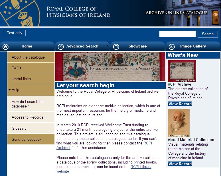 The end of December 2011 saw the completion of the 21 month Wellcome Trust funded project to electronically catalogue RCPI's entire archival holdings. The project has been a great success; all the material in the 26 archival collections held by RCPI at the start of the project has been catalogued. In addition, two collections of material which were donated to the archive during the project have all been catalogued; the papers of the