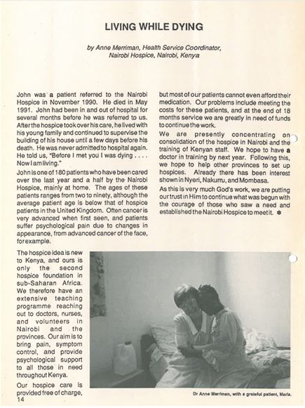 Merriman, Anne. (1991) 'Living While Dying', Contact, No. 122, pp.14