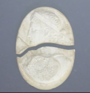 Fig. 11 Large glass portrait plaque with bust facing left and Medusa motif, below