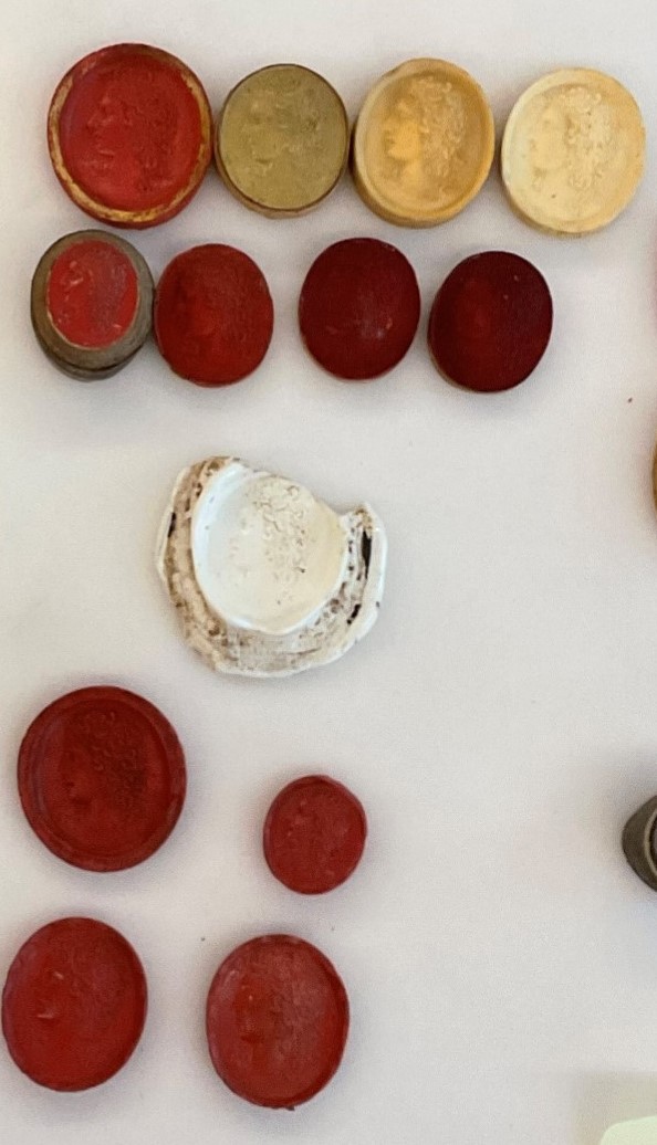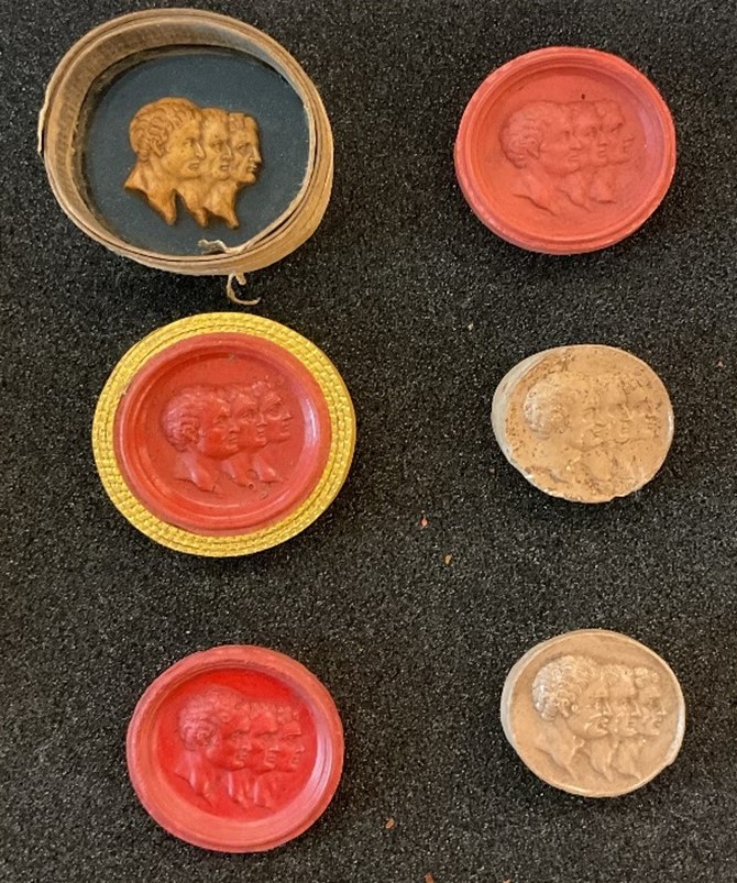Fig. 9 Specimens in a variety of materials depicting Triumvirate of Roman Emperors, possibly Lepidus, Antony and Octavius