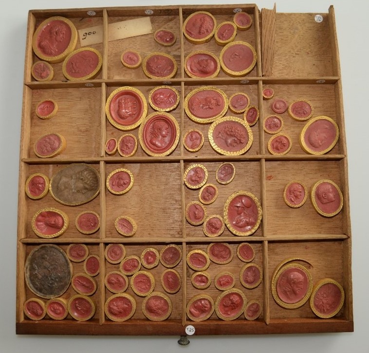 Donated in 1926 by the family of our Past President, Dr. Henry Quin (Fig. 1), the collection consists of over 1,700 miniature gem casts and moulds created by Quin and renowned gem engraver James Tassie (Fig. 2). The gems depict subjects from the visual cultures of Classical Antiquity, which fascinated those in 18th century society (Fig. 3 & 4).