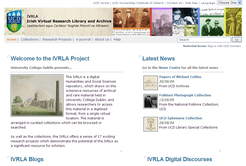 Harriet Wheelock / Thursday 18 November 2010 Irish Virtual Research Library and Archive Last week saw the launch by University College Dublin of the second phase of the Irish Virtual Research Library and Archive. The IVRLA is a digital humanities and social science repository, which aims to make some of the extensive, rare and unique archive and research material at UCD available in a digital format. The digitised material on the site is divided into thirty-two Collections, which represent a sample of the archival, library and folklore collections held at UCD. In addition there are also seventeen Research Projects. While the Collections make material available in a digital form, the Research Projects aim to show the research potential of the IVRLA digitised collections, the potential of the IVRLA to preserve material or to act as access point for material not previously catalogued. The IVRLA contains a huge body of material, which will be relevant to researchers in many different fields. Although material in many of the Collections and Research Project will be of use to research in the field of the history of medicine, there are a number of projects which are very important for this field; Index to the Dublin Journal of Medical Science – This Research Project has created an index of the contents of the Dublin Journal of Medical Science from its foundation in 1832 to the year 1949. The Dublin Journal is Ireland's longest running medical journal and is of huge importance to the history of medicine. Unlike previous indexes this project not only details the main articles but all pieces no matter how small, these include reports of hospitals, reviews of recent medical works and discoveries, obituaries of Irish medical men, special reports and occasional advertisements. The indexes are downloadable in the form of six excel spreadsheets covering the six series of the journal. These indexes contain the details of the volumes, title of each entry, author(s) names, page references and notes on illustrations. The Library here holds a complete run of the Dublin Journal from its foundation in 1832. As with all material in Dun's Library, these are available by appointment Monday to Friday from 10am to 1pm and 2pm to 5pm. Similar to the Dublin Journal project is the Index to the Irish Builder and Engineer which provides an index to the editions of this periodical published between 1890 and 1914. Other projects of interest include the project to Reconstruct the Library of the Royal College of Science, and social history projects looking at the Irish Famine and emigration to America. All the material on the site, with the exception of three Questionnaire Collections from the National Folklore Archive, are accessible through the IVRLA site, the site also hosts an e-journal which contains research reports and technical working papers produced as part of the project.