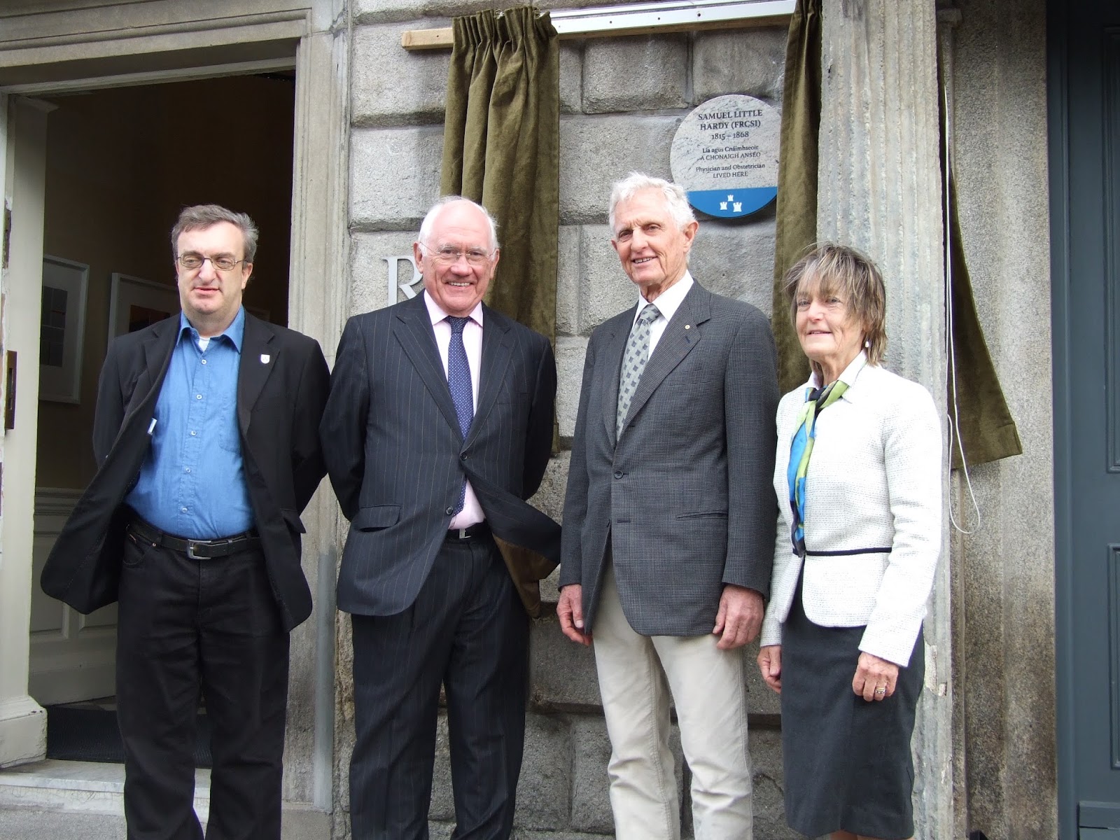 Earlier today a memorial plaque was unveiled in memory of Dr Samuel Little Hardy, obstetrician and physician, at his former home at 9 Merrion Square.