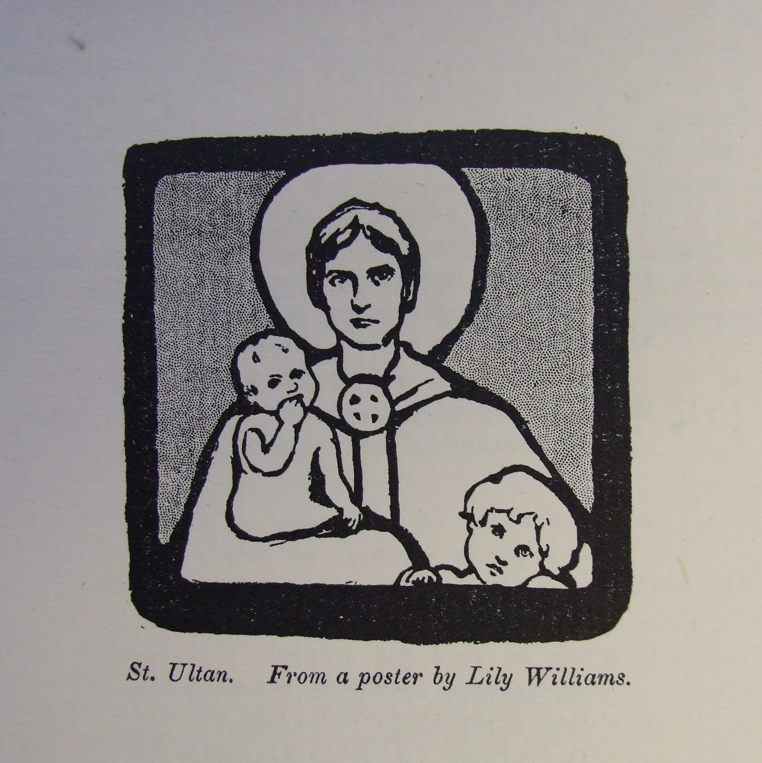 Kathleen Lynn for Saint Ultan's Hospital (now in the RCPI) contributed an image of Saint Ultan to the volume. From the dates of the two works it seems likely she worked on both at much the same time.