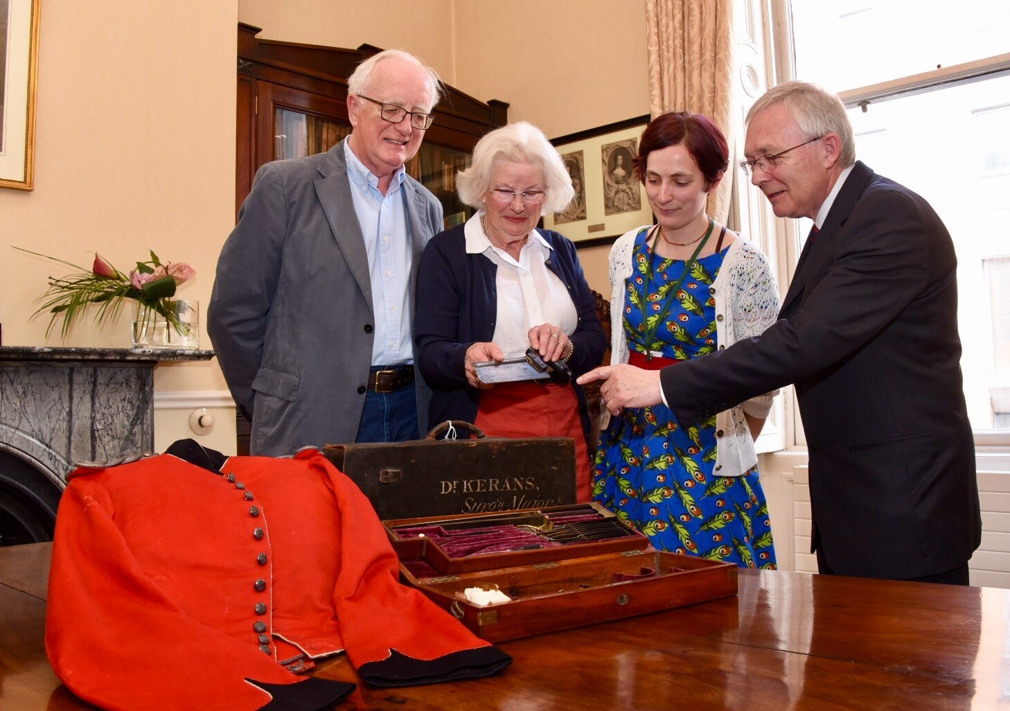 Earlier this week Dr and Mrs Watson visited the Heritage Centre to present the Regimental Mess Uniform of Brigade Surgeon William Robert Kerans to RCPI, on behalf of their son James Watson. At the same time they also renewed the loan of Kerans’ surgical instruments to our collections.