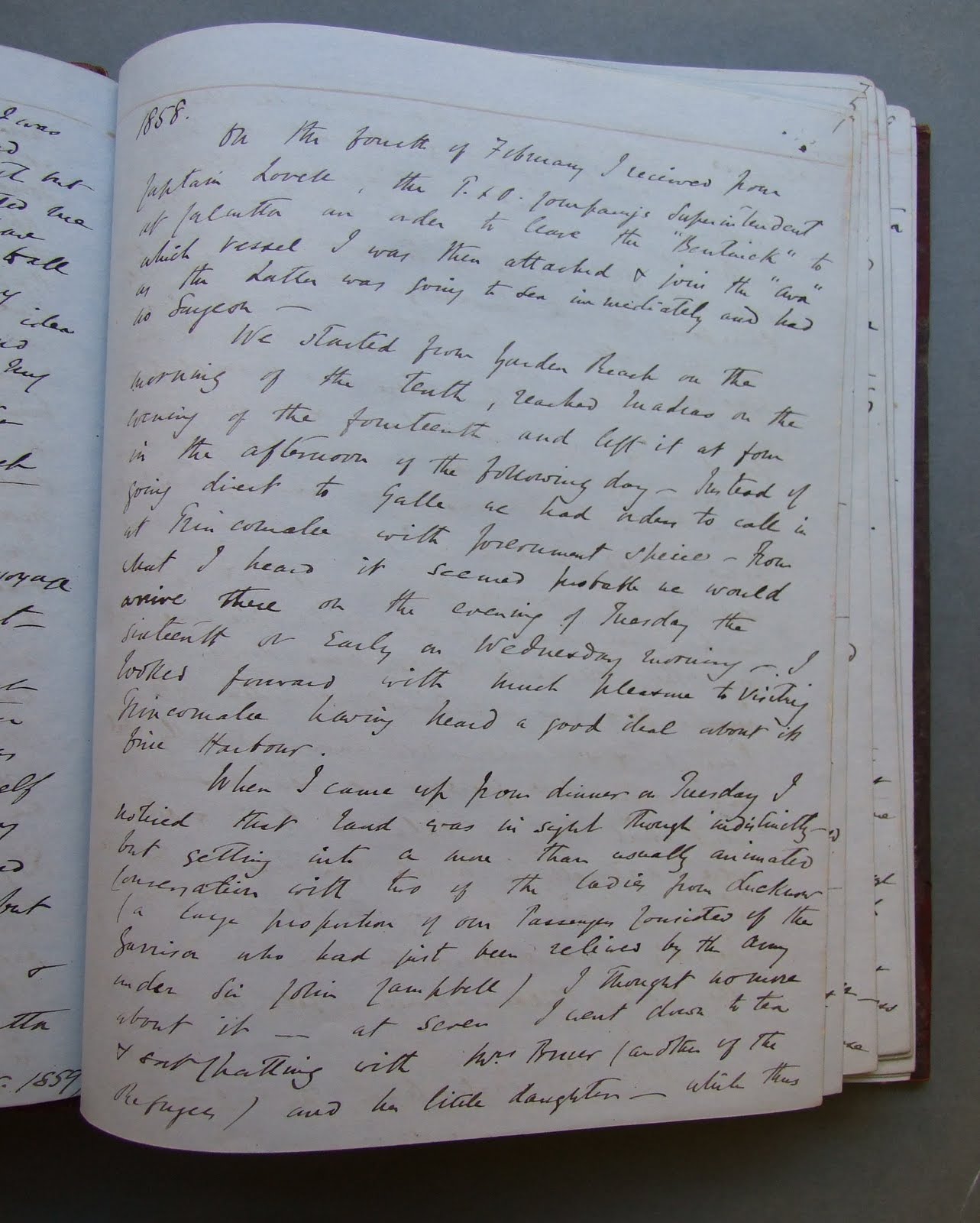 In Dublin James Little enrolled as a student of the Royal College of Surgeons in Ireland, becoming a Licentiate of the College in 1856. On March 20th 1857 Little left Southampton on the 'Vera', bound for Calcutta where he had accepted a post as Surgeon to the Peninsular and Oriental Steam Packet Company, a post he would retain for 3 years. Dr Little's three years service with the P&O Company are the main focus of the diary. In his diary Dr Little records his experience as a ship surgeon and also the long periods of unemployment where he lived at the officers club in Calcutta.
