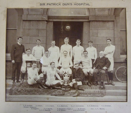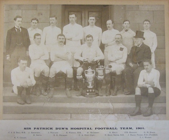 Harriet Wheelock / Friday 23 July 2010 The Dublin Hospitals Rugby Cup In January 1881 a group of physicians and surgeons met in Dublin to discuss Dr Cassidi's idea for a rugby league to be played between teams fielded by the Dublin Hospitals. Amongst those who supported the idea, and contributed towards the trophy, was William Thornley Stoker, the brother of Bram Stoker author of Dracula. The Hospitals Cup has been played every year since 1881 (with the exception of 1916-1917 and 1945-1946) making it the longest running rugby competition in Ireland.[1] Sir Patrick Dun's Hospital was involved from the beginning and was particularly dominant in the early years of the competition, winning the cup 16 times in the first 30 years. Amongst the hospital papers is a fantastic collection of team photographs showing all but one of the twenty two Sir Patrick Dun's Rugby teams who have won the cup. As well as the photographs the collection also contains a rugby cap from the 1900-1901 team. Amongst the hospital teams, especially when rugby was an amateur sport, were several players who would later go on to represent Ireland, one example from Sir Patrick Dun's Hospital is Bethel Solomons (1885-1965), third from right in the back row of the photograph above. Solomons studied medicine at Trinity and so would have attended Sir Patrick Dun's, as the universities teaching hospital. He played on the Hospital's cup winning team in the 1903-1904 and 1904-1905 seasons. After graduating from Trinity in 1907 Solomons won ten caps for Ireland in the next three years, but his rugby career gave way to the demand of medicine. Solomons specialised in gynaecology and in 1926 he was elected Master of the Rotunda, where he was a progressive and innovative doctor and master. His connection with the hospital was celebrated by James Joyce in Finnegan's Wake 'in my bethel of Solyman's I accouched my rotundaties'. Solomons was elected President of the Royal College of Physicians of Ireland in 1946, a position he held for three years.[2] [1] Leinster Rugby: Dublin Hospitals Rugby Final Preview, 17 December 2008, http://www.leinsterrugby.ie/domestic/3067.php [2] 'Bethel Albert Herbert Solomons' by William Murphy, Dictionary of Irish Biography 2010. Images: Sir Patrick Dun's Hospital Rugby Football Team 1901, PDH/6/4/11 Sir Patrick Dun's Hospital Rugby Football Team 1904, PDH/6/4/13 Sir Patrick Dun's Hospital Rugby Cap, 1901, PDH/7/7