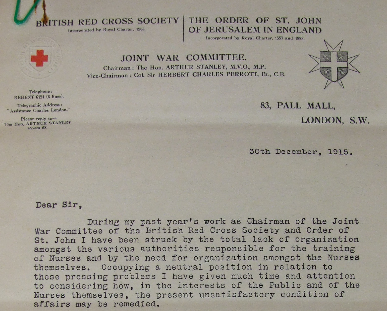 | Letter from Sir Arthur Stanley (TPCK/2/6/1/1) |